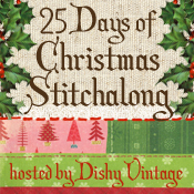 If you'd like to join in on the fun, please leave a comment here or on my Dishy Vintage blog and give me your blog address so that I can add it the blog roll I will have here on this blog. If after a couple of days you don't see your blog listed, please just drop me another comment as reminder. Also, I'd love it if you would grab a button and add it to your blog to spread the word. The code for the blog button is right over there to the right -------------->. The more the merrier, really! It's so fun to log on every morning and see what everyone has stitched.